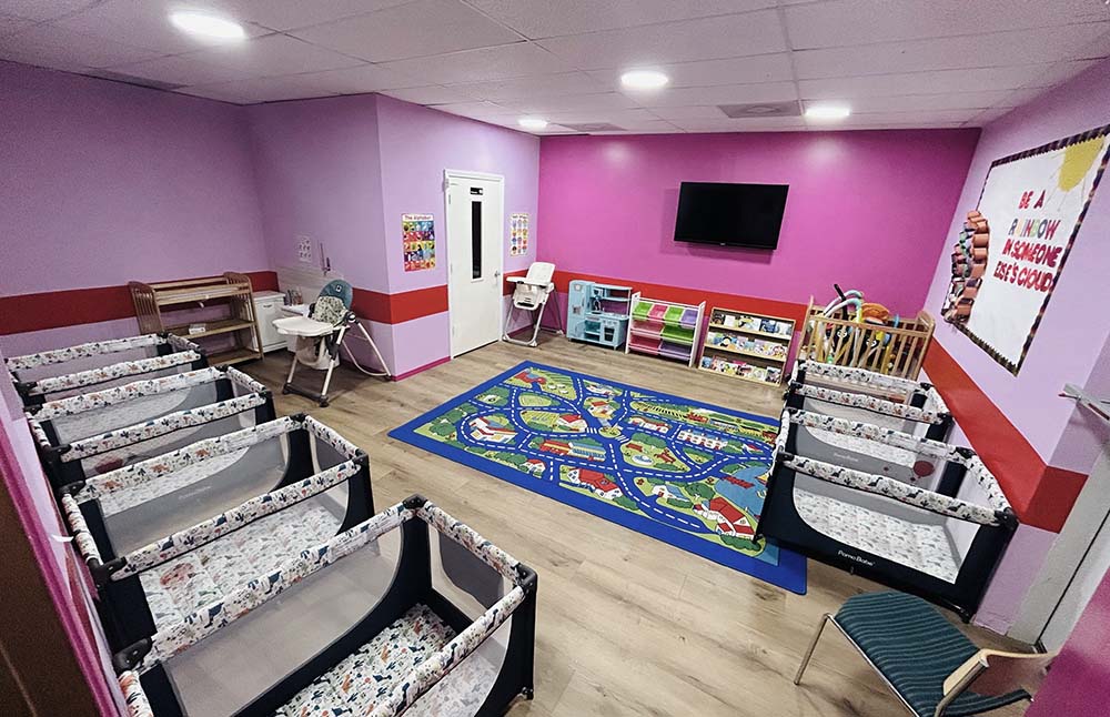 Nursery(6 weeks-11 months): We understand that the first year of a child's life serves as the foundation for future stages of development. We are committed to providing a safe nurturing environment for your infant to ensure the best start in life. Our infant program utilizes age appropriate toys, music to stimulate growth, nurturing personal care, with daily infant care sheets and a warm caring environment.